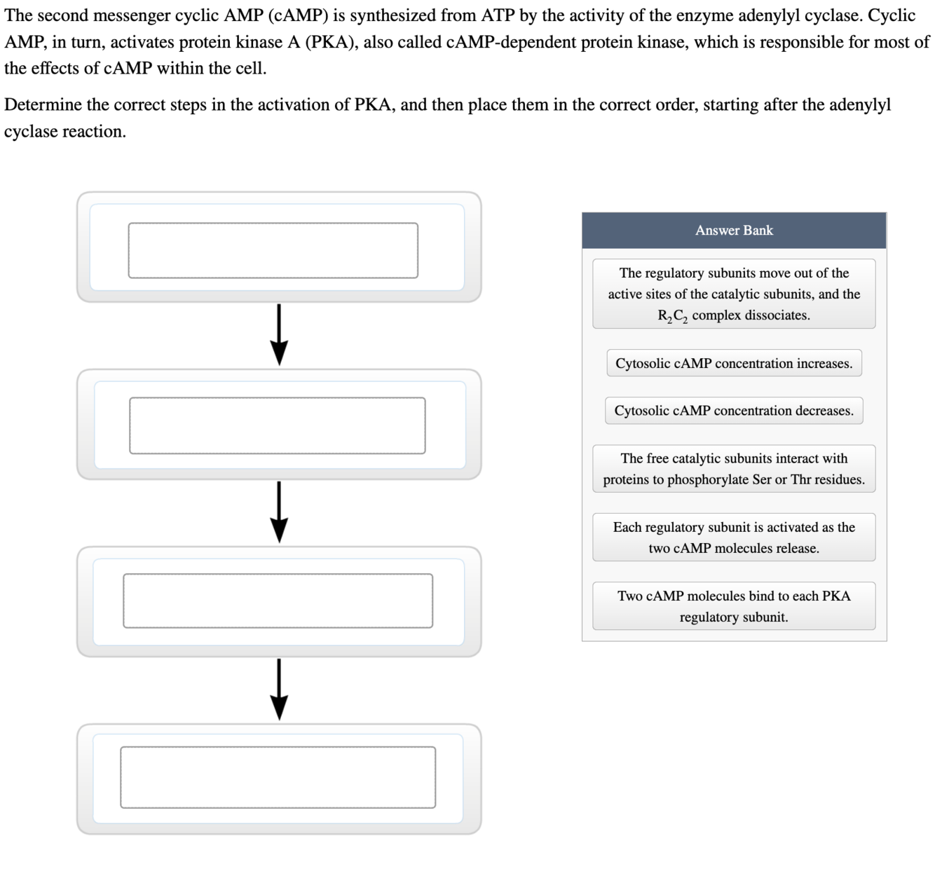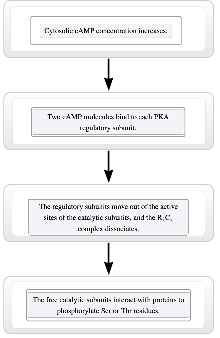 Het initiële signaal, het binden van het hormoon door een receptor, wordt vergroot door enzymen en kanalen.