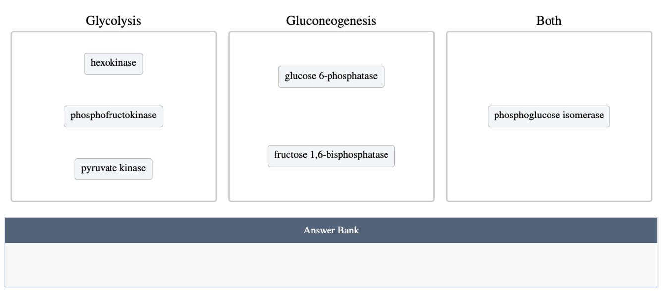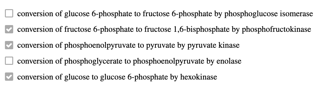 De vorming van fructose 1,6-bisfosfaat door fosfofructokinase wordt in de gluconeogenese omzeild door fructose 1,6-bisfosfatase, dat de omzetting van fructose 1,6-bisfosfaat in fructose 6-fosfaat katalyseert. Tenslotte wordt de hexokinase-gekatalyseerde vorming van glucose 6-fosfaat in de glycolyse omzeild door glucose 6-fosfatase, maar alleen in de lever.