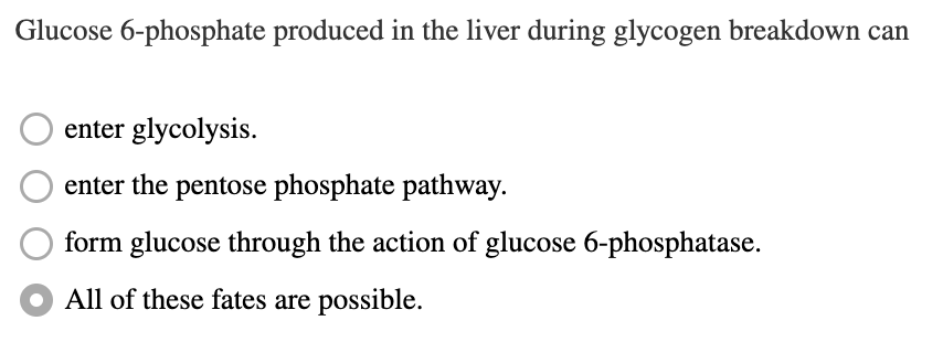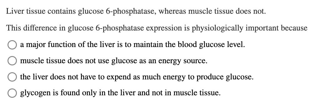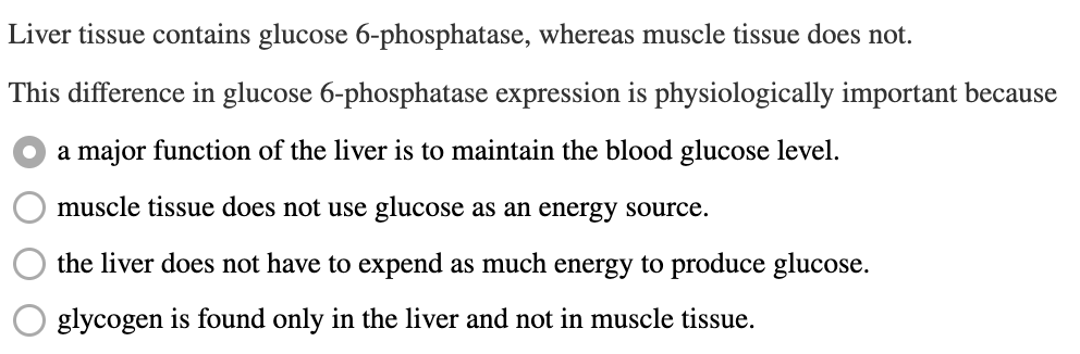 Glucose is een belangrijke energiebron voor beide weefsels en is in wezen de enige energiebron voor de hersenen. Bijgevolg mogen deze weefsels nooit glucose vrijgeven. Het vrijkomen van glucose wordt voorkomen door de afwezigheid van glucose 6-fosfatase.