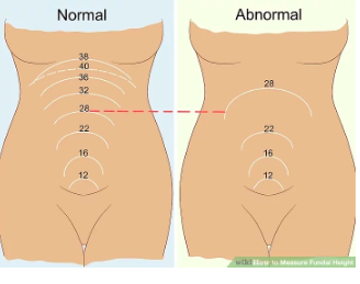 Below the a schematic of an abnormal fundal height measurement at 28 weeks, prior to this the fundal height was within normal parameters. What is a possible explanation for this result?