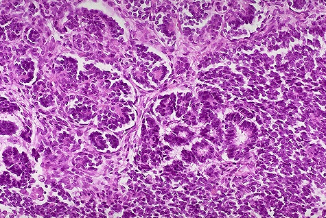 tumor shows attempts to form primitive glomerular and tubular structures. Pediatric neoplasms are often composed of cells that resemble primitive embryonic counterparts: -blasts. In this case the cells are reminiscent of developing nephroblasts.