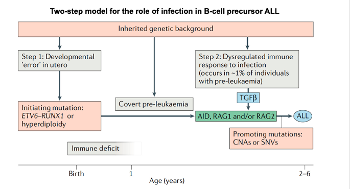 Explain the two step model that causes ALL