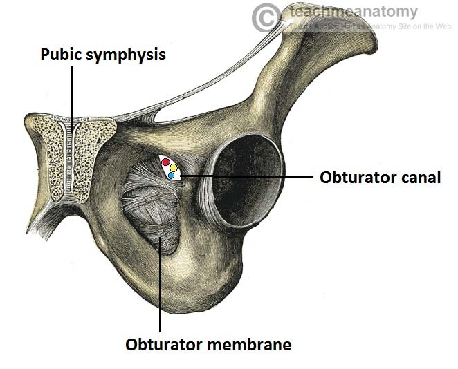 What covers almost the entirety of the obturator foramen? What passes through the small gap present?