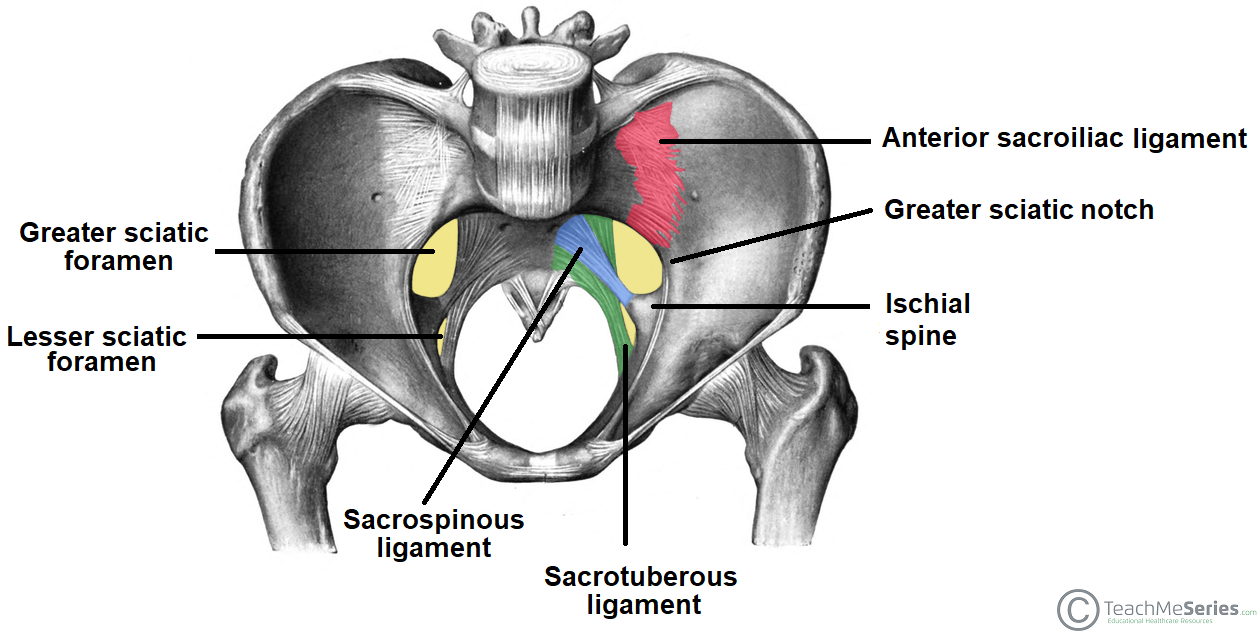 Ant-Post: Between sacral promontry + pubic symphysis. This is fairly immobile