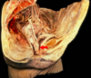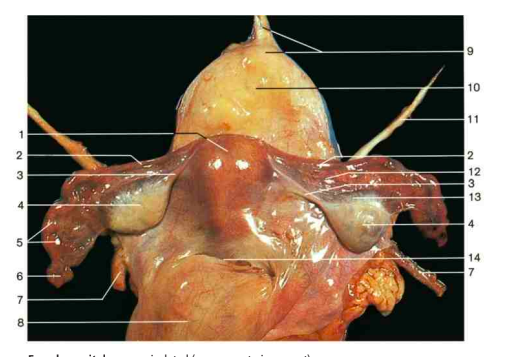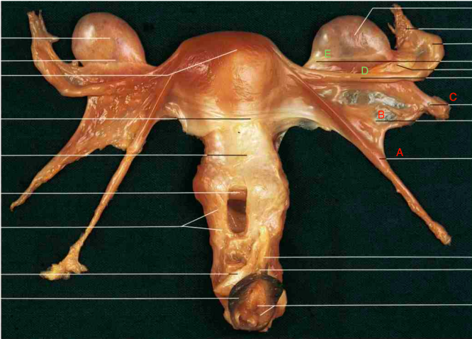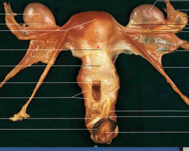 Complete the sentence: The ovarian ligament connects the ovary to the ______________.