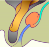 An 84-year-old man admitted to the neurology ward informs the nurse that he is unable to urinate. He appears significantly distressed and reports pain due to urinary retention. The nurse places him in a warm bath, where the patient is finally able to relax his sphincter and urinates.