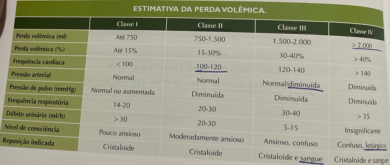 Perda volemica tabela