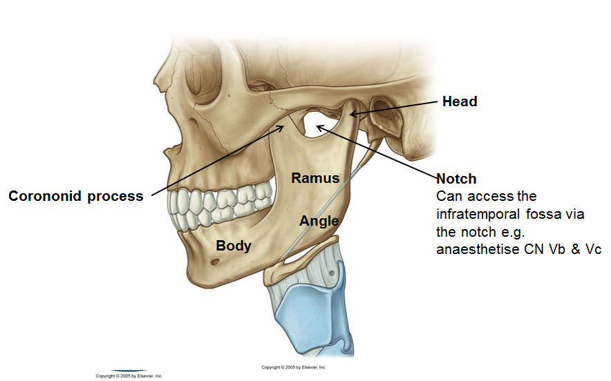 Label the parts of the mandible