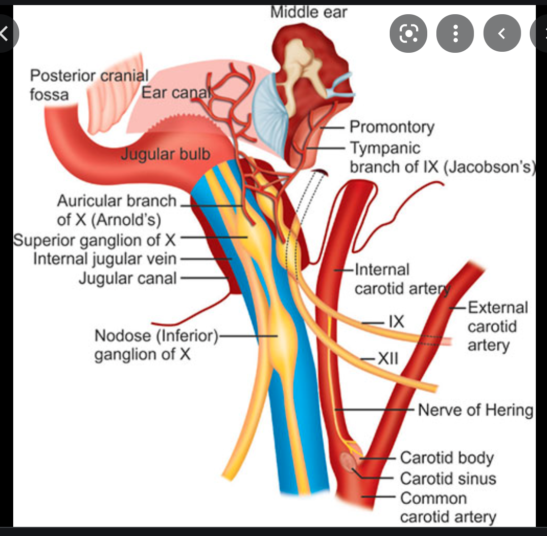 Glomus vagale tumours are paragangliomas that occur along the path of the vagus nerve (CN X). They are a subset of extra-adrenal neuroendocrine tumours that are derived from the nonchromaffin paraganglion cells.