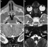 retro-orbital pain, or pain in the cutaneous distribution of the frontal and maxillary divisions of the trigeminal nerve, due to extension of inflammation into Meckel cave