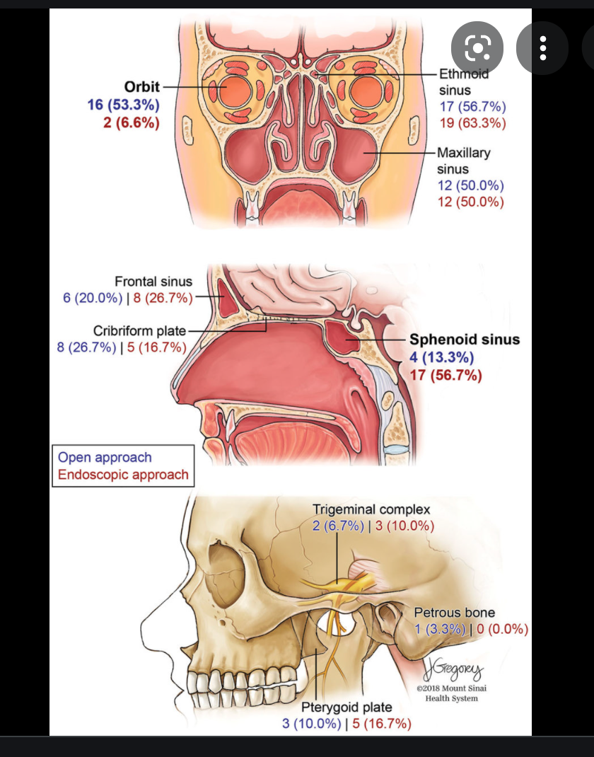 3 Places where lesions of the anterior skull base can arise from