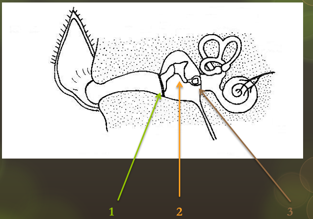 Malleus, incus, stapes. Tensor tympani m. attaches to the malleus (inn. mandibular n.). Also, the stapedius m. (the smallest skeletal muscle in the body!) attaches to the stapes (the smallest bone in the body), inn. VII.