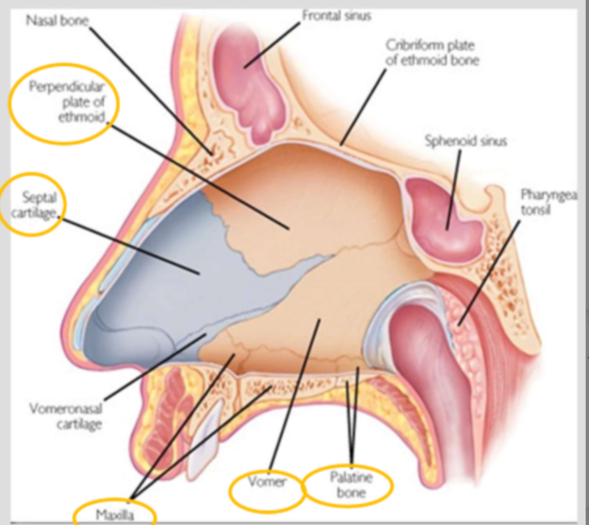 what makes the medial wall of the nasal cavity? (nasal septum)