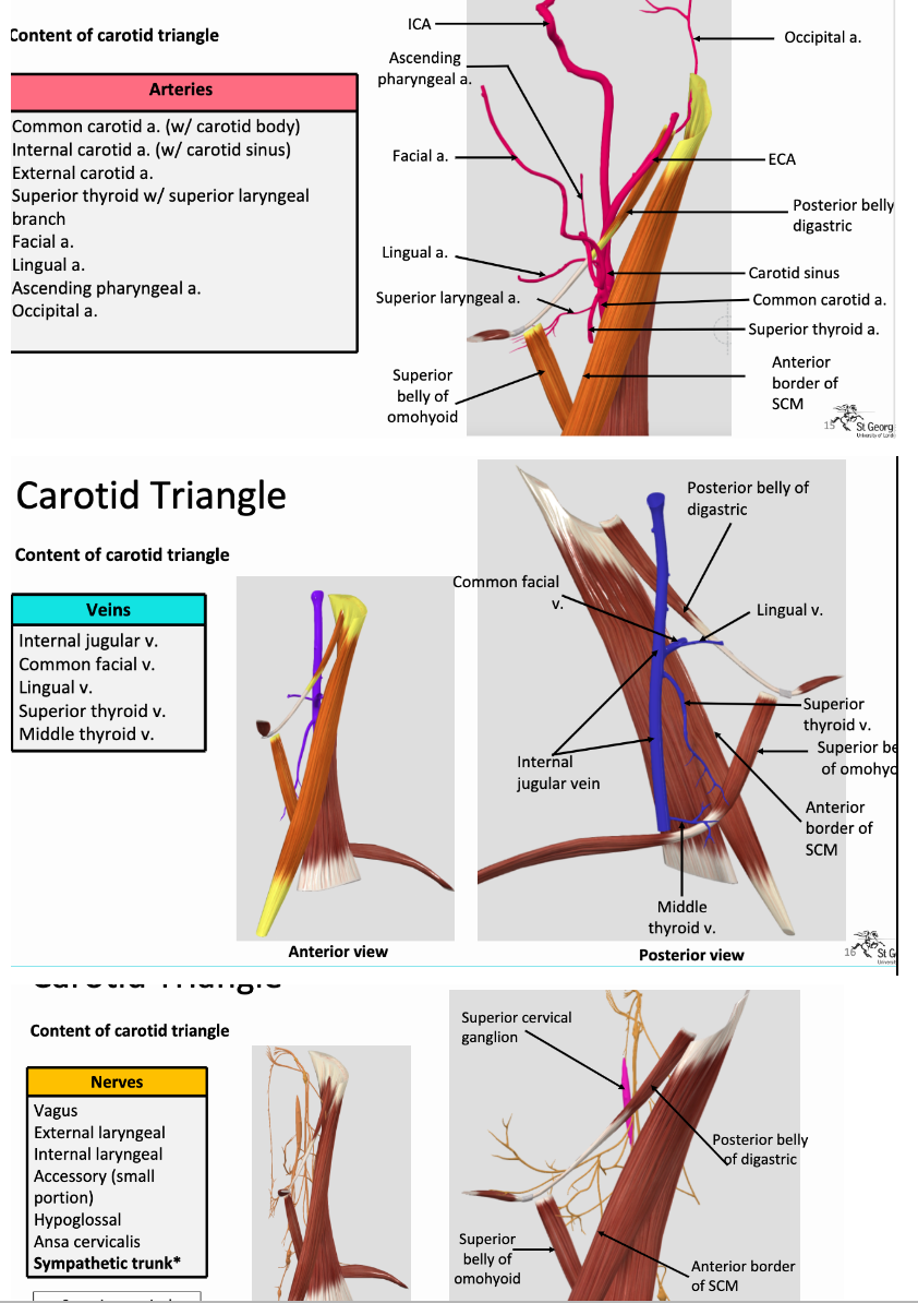 what are the contents of the carotid triangle? label