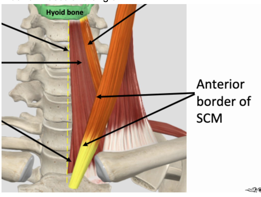 * Anterior border of sternocleidomastoid m.
