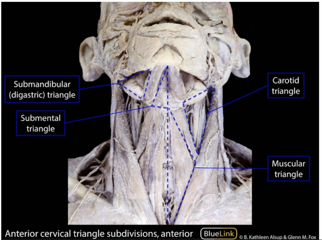 label the differnet sub triangles of the anterior triangle of the neck