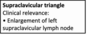 * Omoclavicular triangle (AKA supraclavicular triangle)