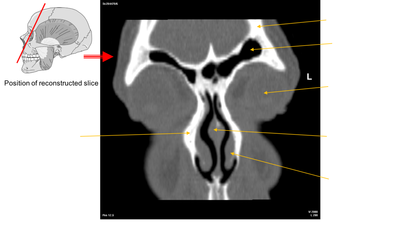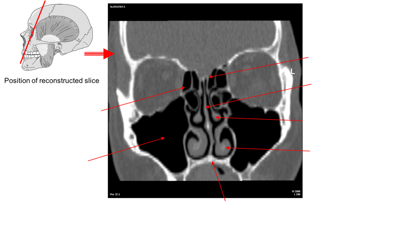 These are thin scroll shaped bony plates that project into the nasal cavity. There are usually three the superior, middle and inferior nasal conchae (supreme may also be present).