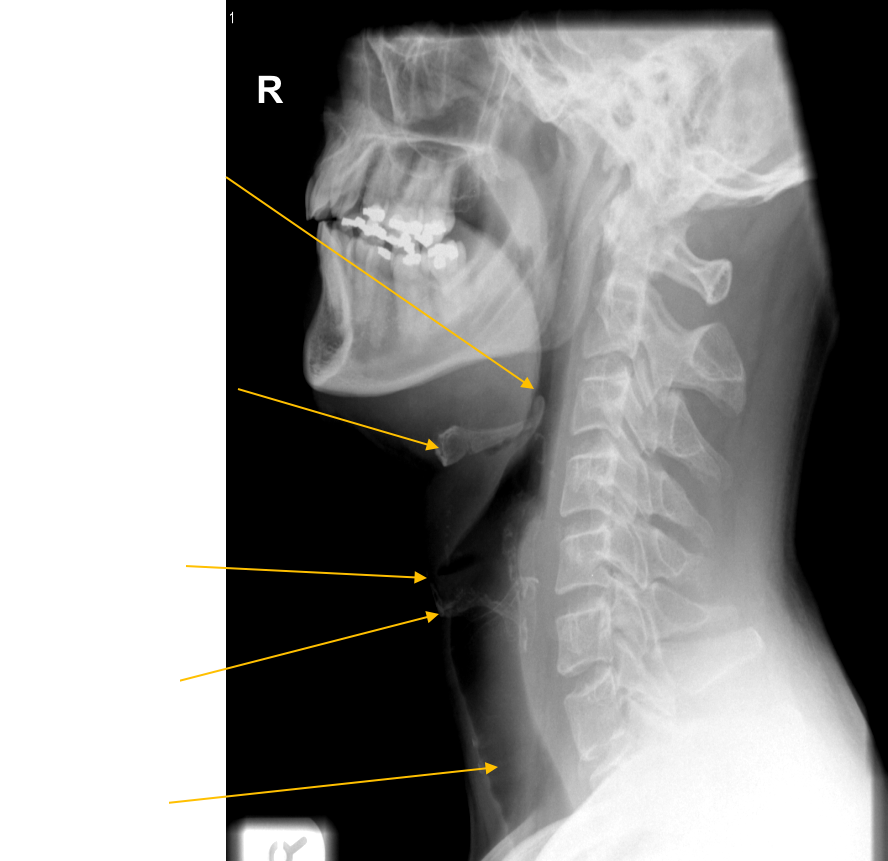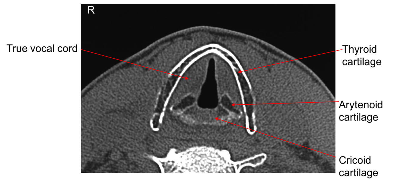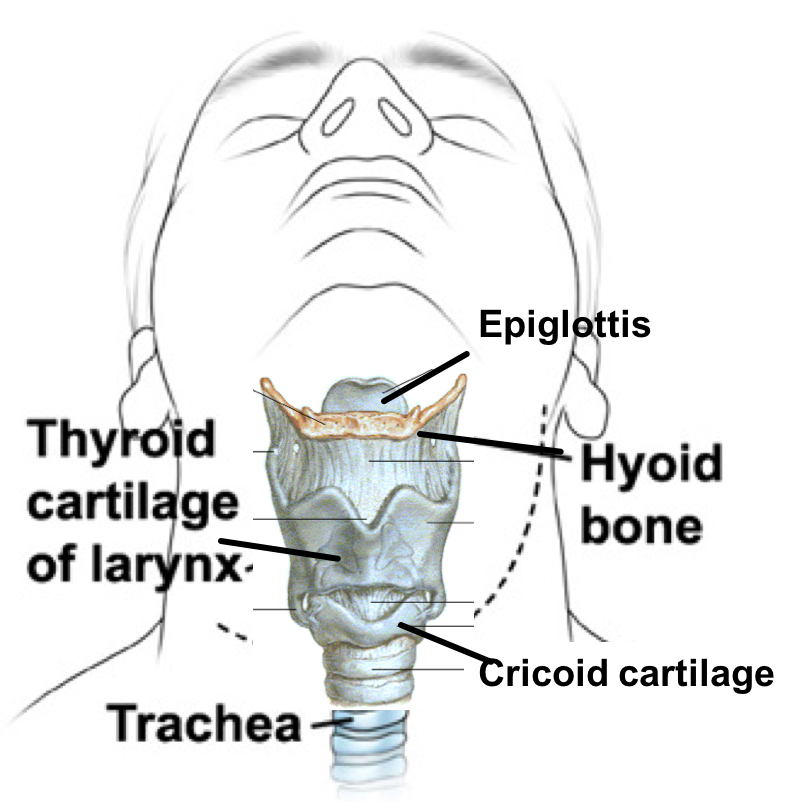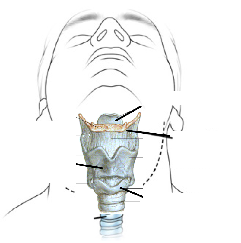 Larynx – short passage connects laryngopharynx with trachea. Lies in the midline of neck anterior to fourth - sixth cervical vertebrae.
