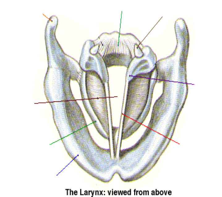 Wall of larynx composed of nine pieces of cartilage held together by membranes & muscle fibres. Three of the pieces of cartilage are single (thyroid, epiglottis, cricoid) three are paired (arytenoid , cuneiform, corniculate)