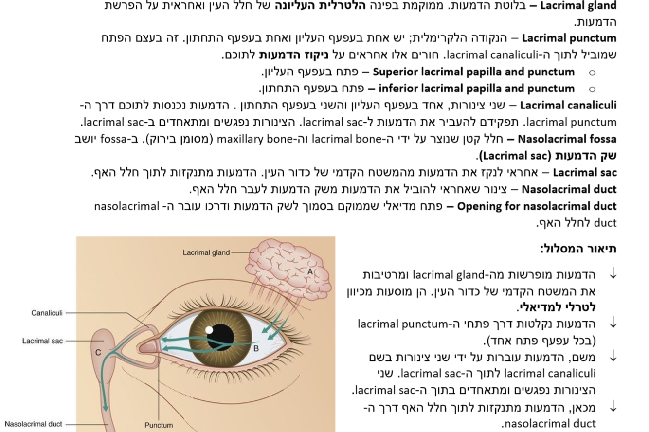 תאר איפה כל אחד מהמבנים הבאים נמצא ומה תתפקידו בשרשרת תזוזת הדמעות