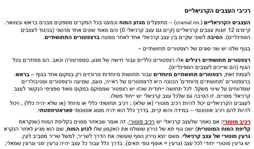 12 זוגות של עצבים קרניאליים ועוד 31 זוגות עצבים ספינאליים