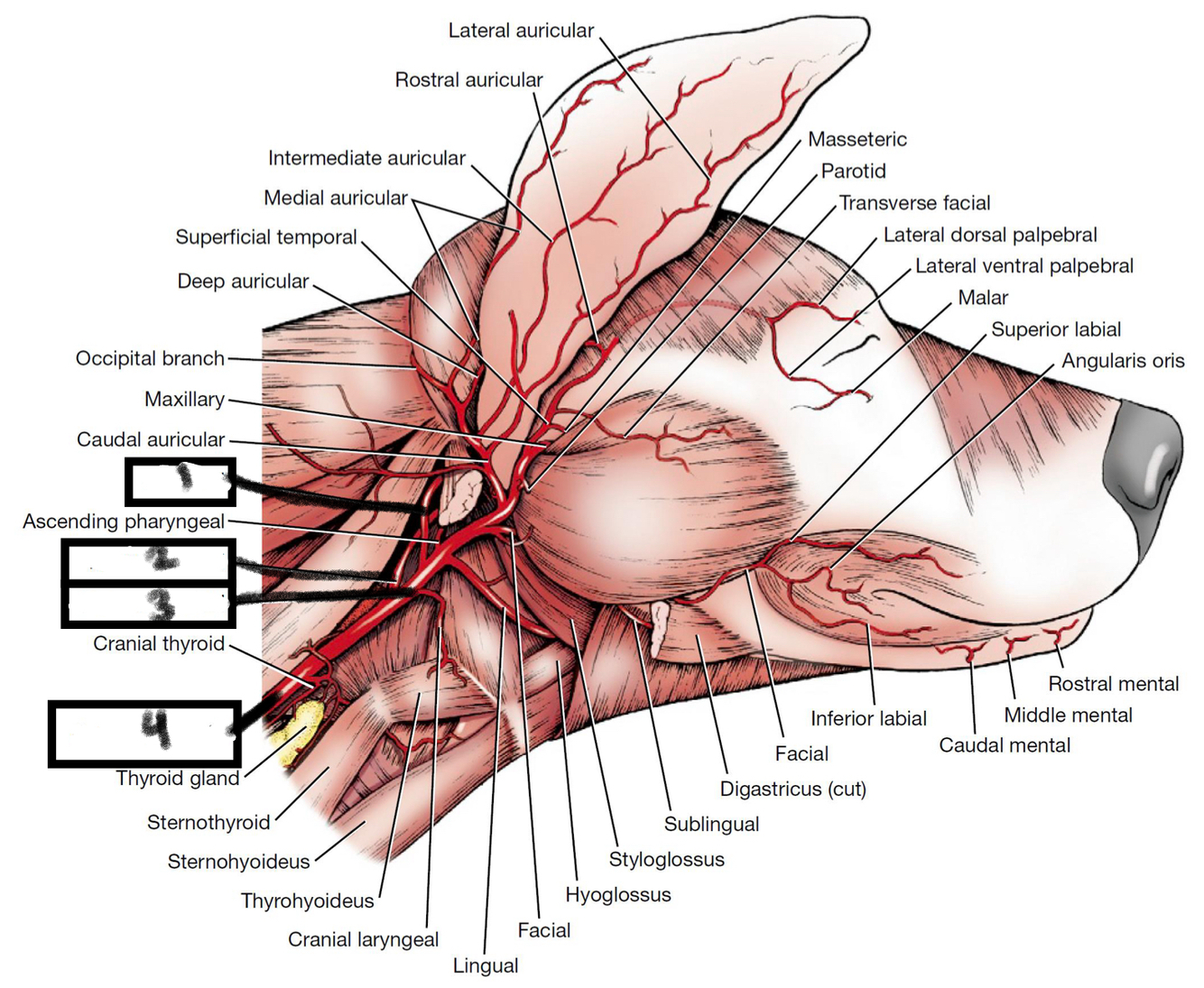 2) caudal auricular a