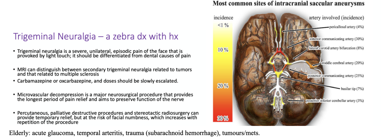 common cold, sinusitis, otitis, sinus thrombosis, dental pain, analgesic headache, shingles, trigeminal neuralgia, aneurysm