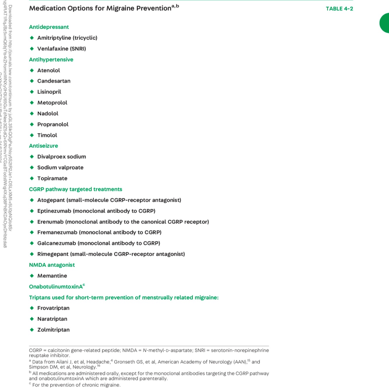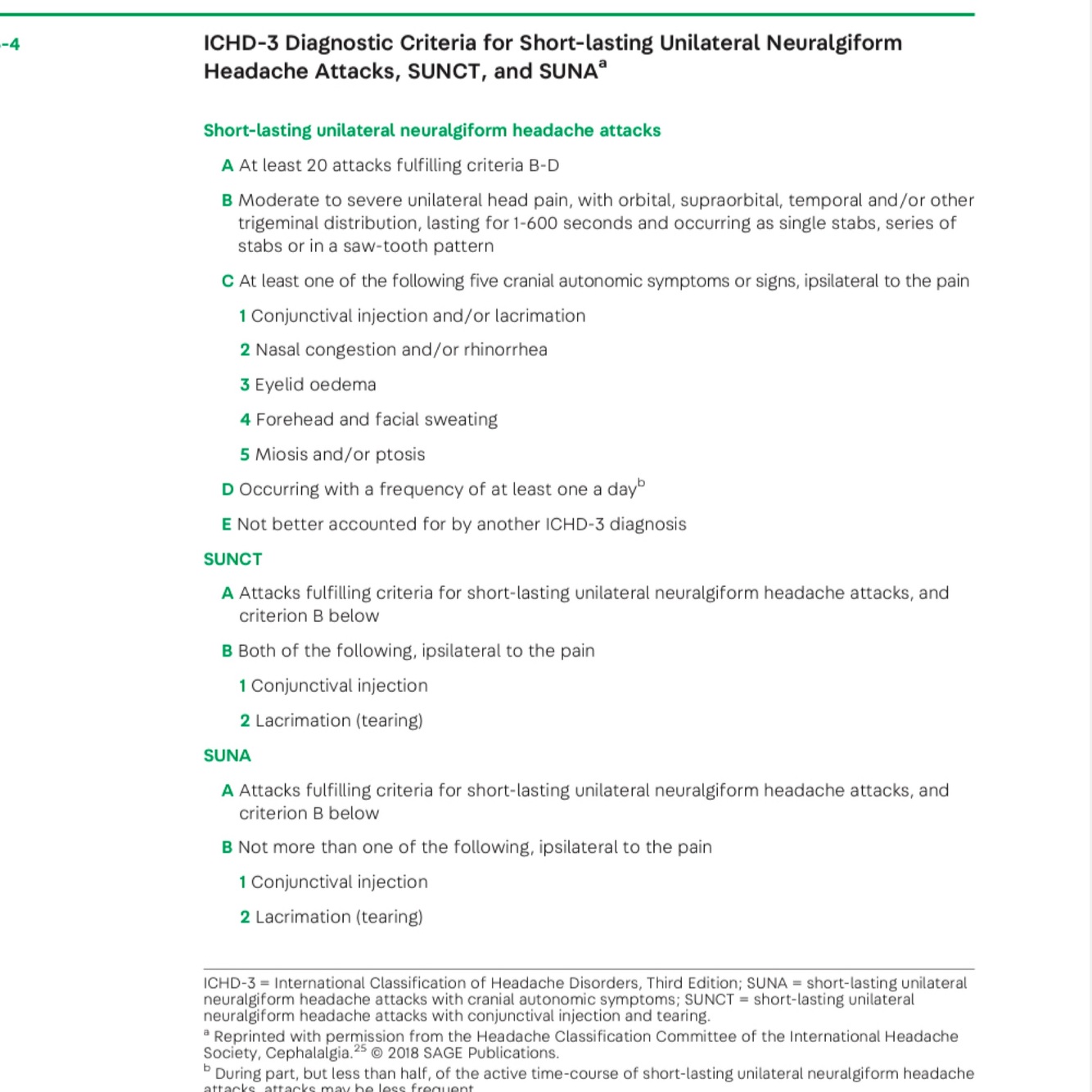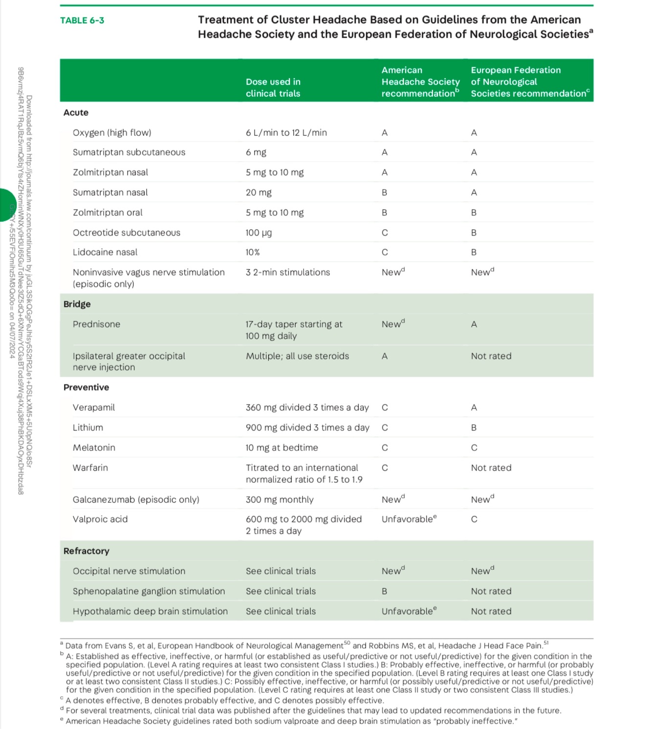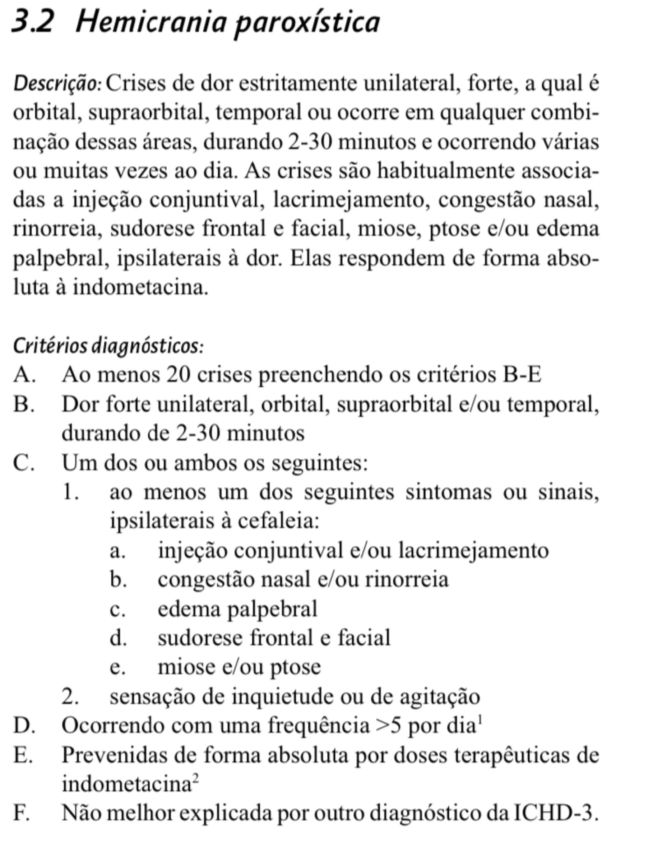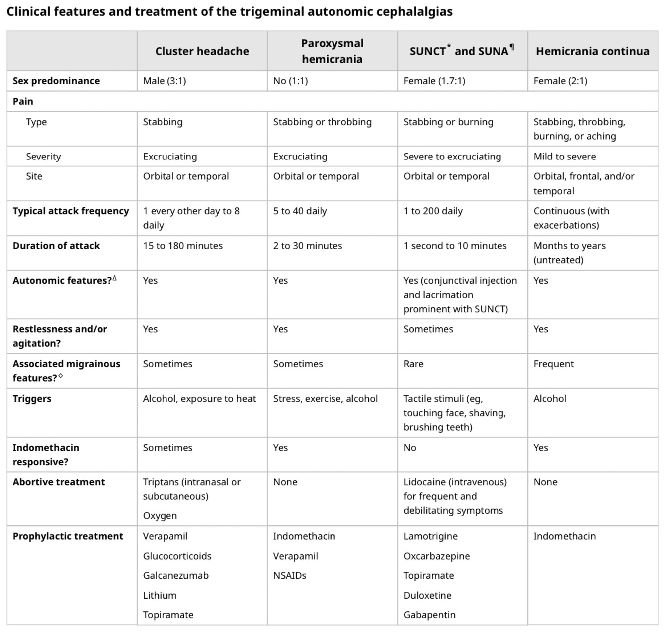 Tabela das cefaleias trigeminoautonomicas e seus respectivos tratamentos