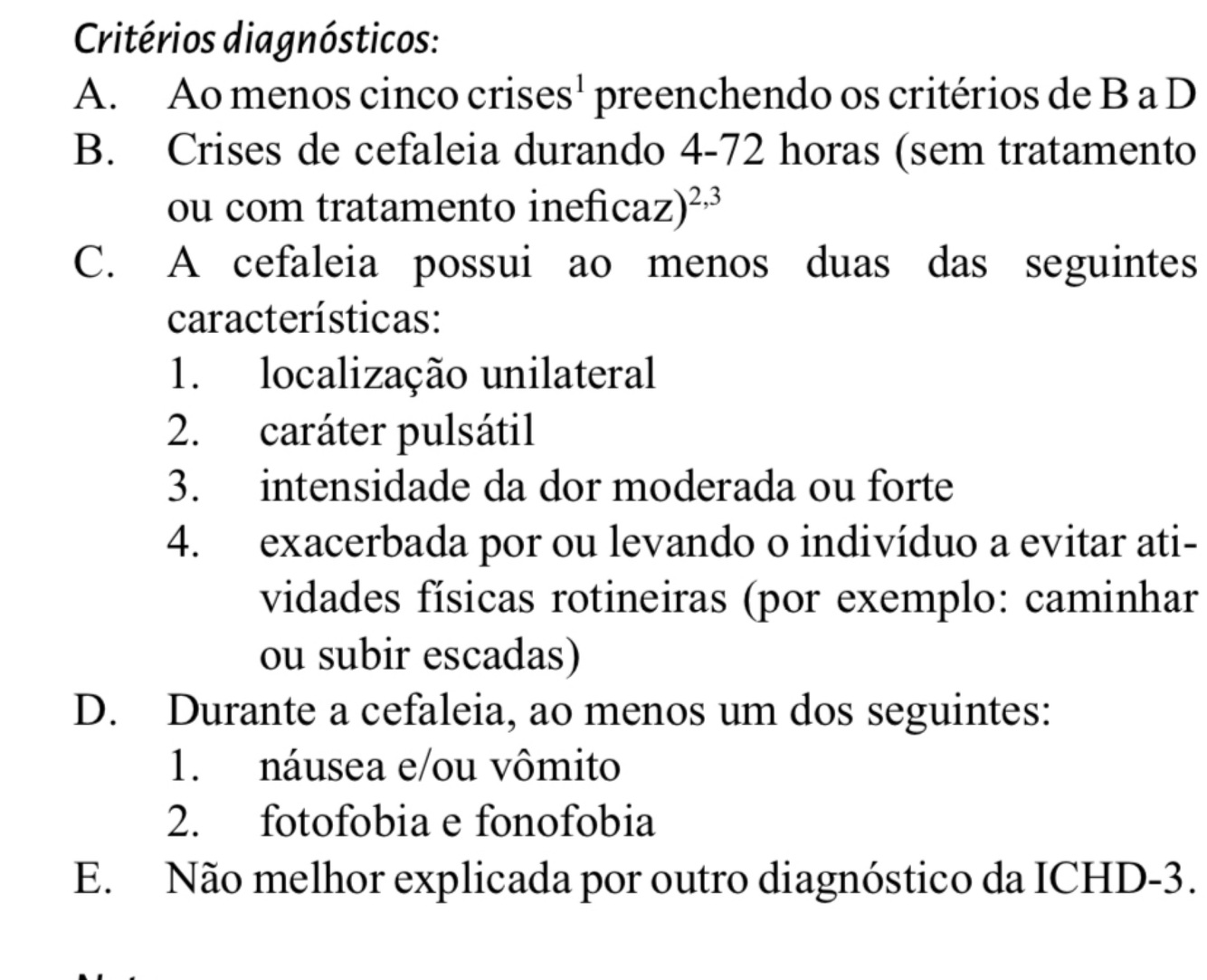 Uso de analgésico >15 dias/mês por >3 meses (>10 dias se opioide/triptano/ergotamínico).