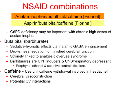 Note that butalbital is strongly linked to analgesic overuse syndrome