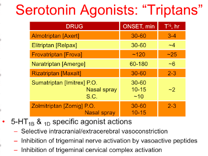 serotonin agonists, particularly on 1B and 1D receptors in the CNS