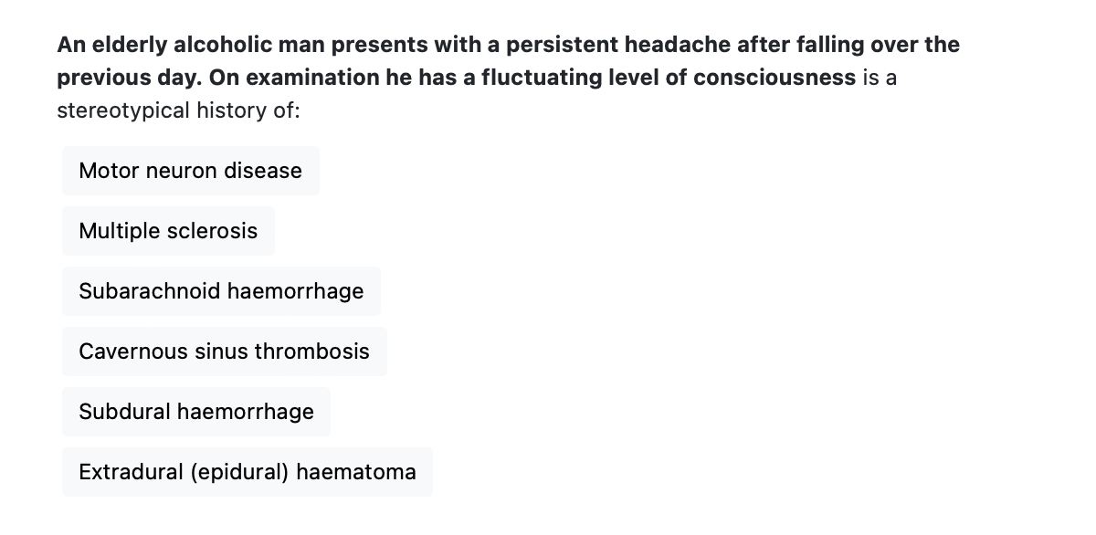 - Typically causes a sudden onset headache and there may be a history of anticoagulation use.