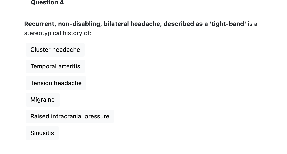 often described as a ‘tight band’ around the head or a pressure sensation.