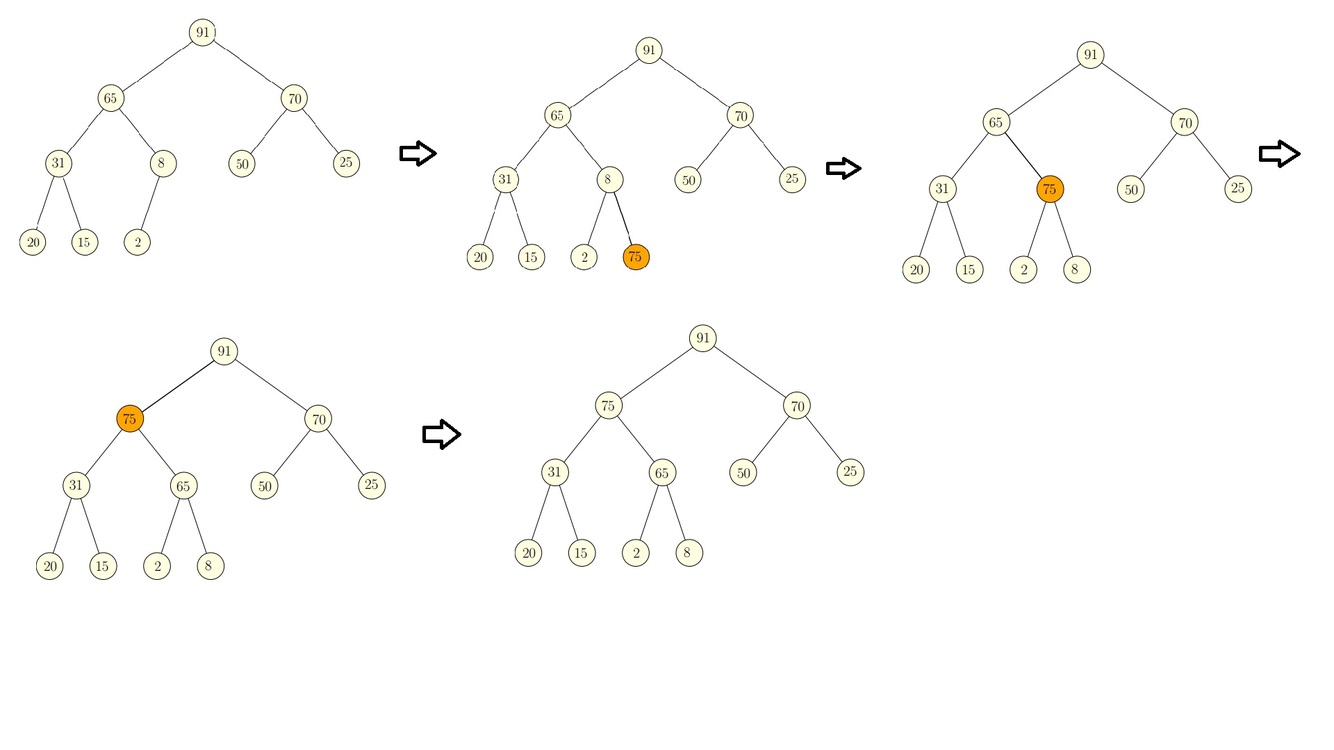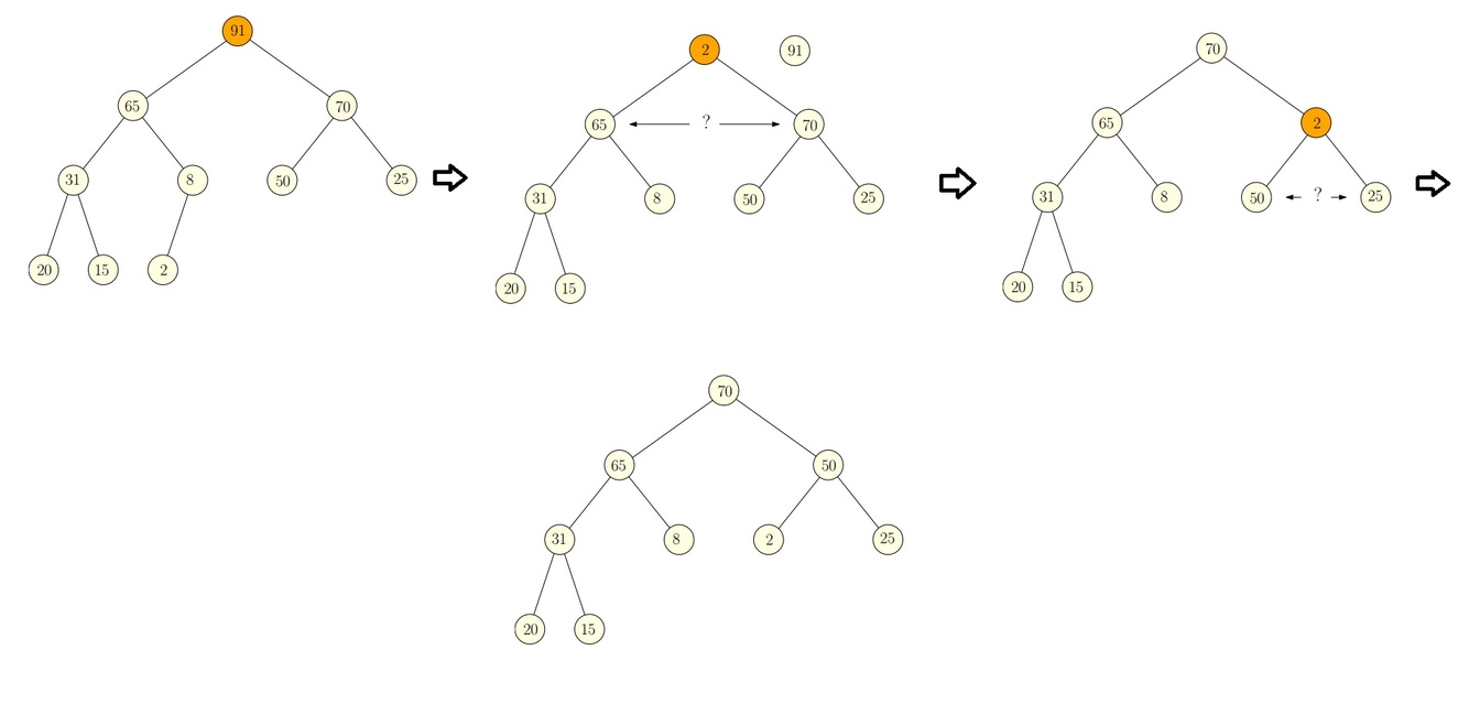 A (maximum) heap is a complete binary tree having a key associated with each node, the key of each parent node being greater than or equal to the keys of its child nodes