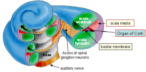 draw and label the structures of the cochlea
