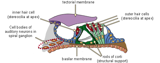 therefore sound frequency is mapped on both the basilar membrane and the spiral ganglion neurons