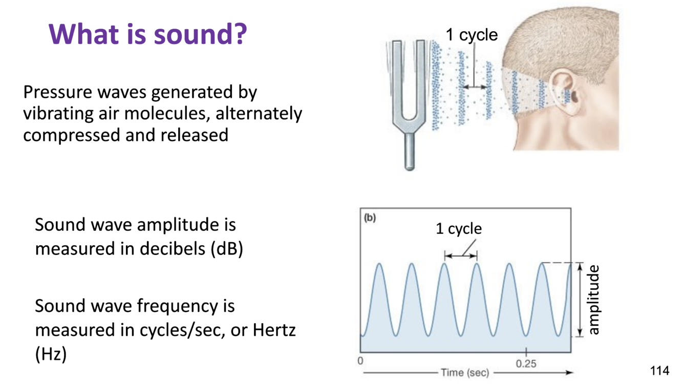 sound wave frequency is measured in cycles/sec, or Hertz (Hz)