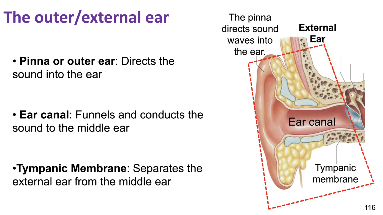 ear canal - funnels and conducts the sound to the middle ear