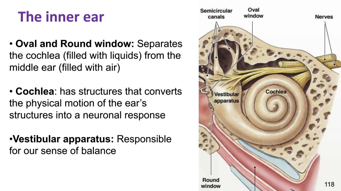 oval and round window - separates the cochlea (filled with liquids) from the middle ear (filled with air)