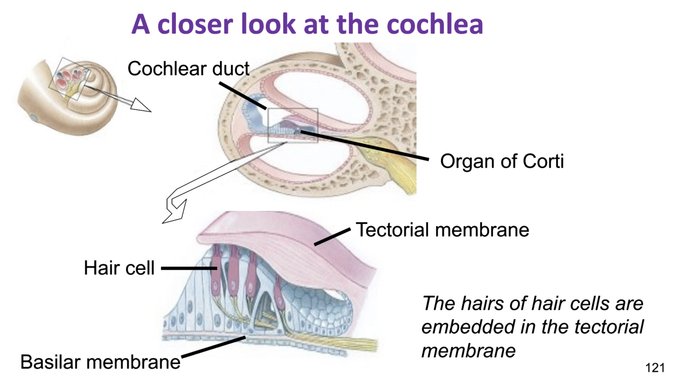 hair cell - the hairs of hair cells are embedded in the tectorial membrane