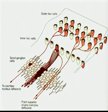 Type 1: Innervate IHC (90-95%), about 20 fibres to each hair cell