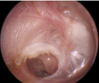 Sudden severe pain sometimes followed by bleeding from the ear, hearing loss, and tinnitus