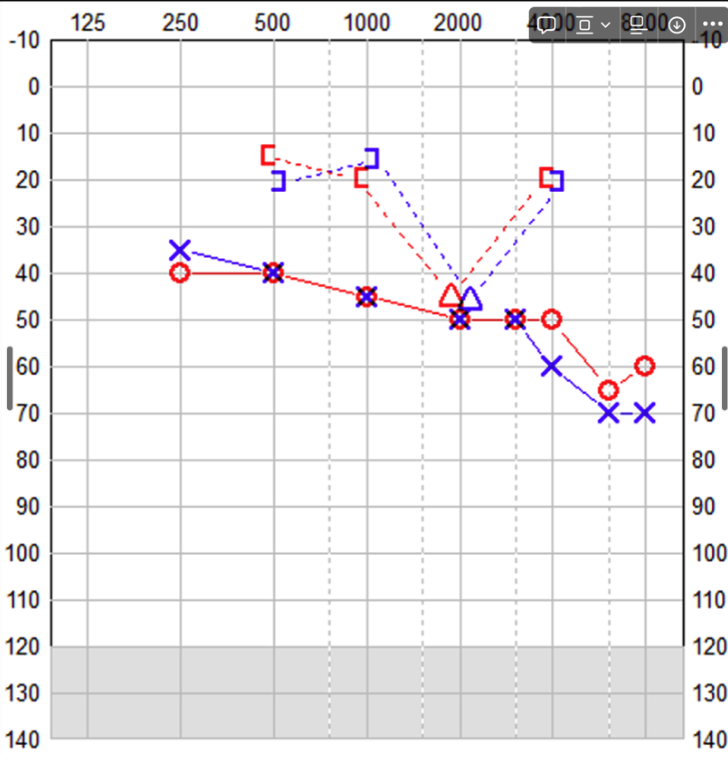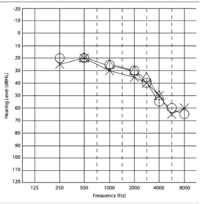 Hearing loss arising due to a pathology of sound detection in the nerves or middle ear components
