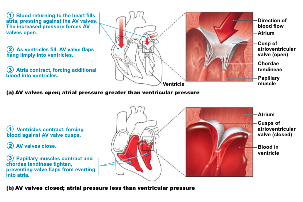 What is the function of heart valves? What do AV valves do? What is the R AV valve called? The Left? WHat holds valve flaps in closed position?
