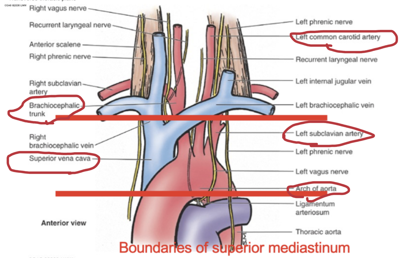 Post mediastinum = oesophagus, sympathetic chain, azygous system of veins)