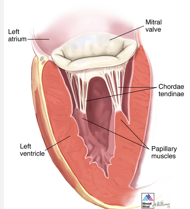 strong, fibrous connections between the valve leaflets and the papillary muscles