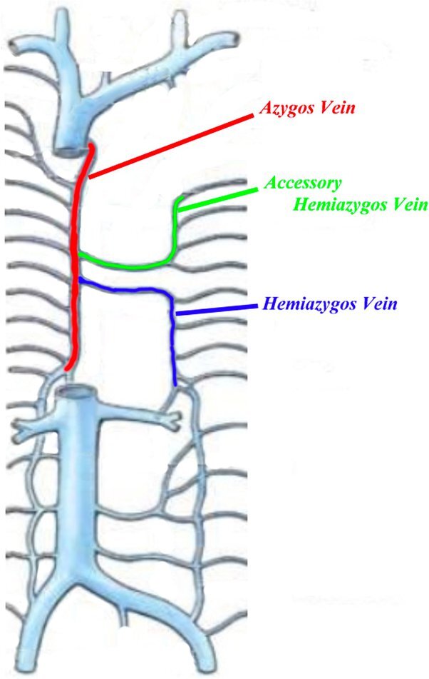 azygos vein and its two main tributaries: the hemiazygos vein and the accessory hemiazygos vein.