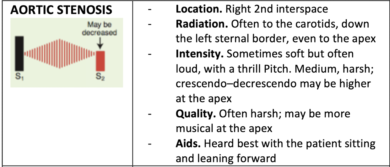 Answer: B (The murmur does not typically radiate to the neck.)