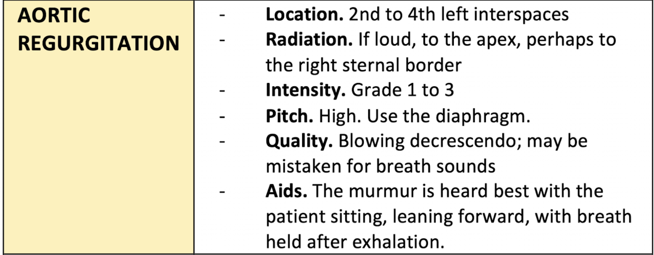 Answer: A (The murmur is best heard with the patient leaning forward.)